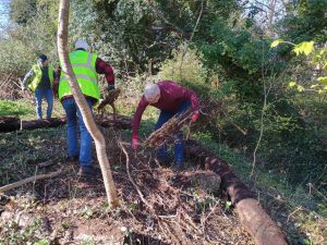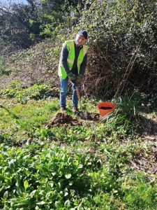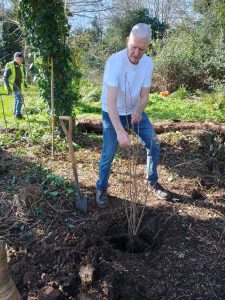 Chris planting a hazel in the Fernery and Brian planting in the newly cleared area